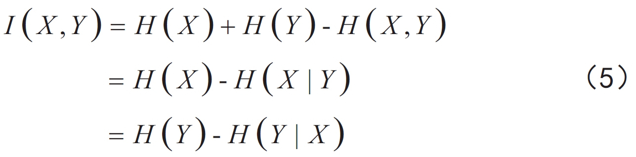 互信息是一種數(shù)學(xué)定義,用來評(píng)估隨機(jī)變量之間的關(guān)聯(lián)性。它表示兩個(gè)隨機(jī)變量中的共有信息。由信息熵描述的互信息表達(dá)式如下[12]: